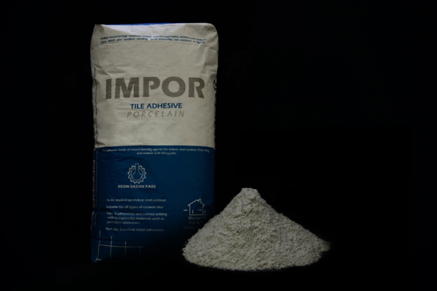 A product based on cement, specific aggregates, and additive materials and combined resins that make high adhesion and efficacy and is resistant against erosion. This product is comprised of various adhesive materials that are appropriate for tiling inside and outside the building and inner walls.